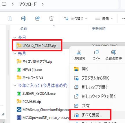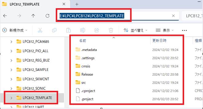 すべて展開し、LPC812_TEMPLATE フォルダをコピーします