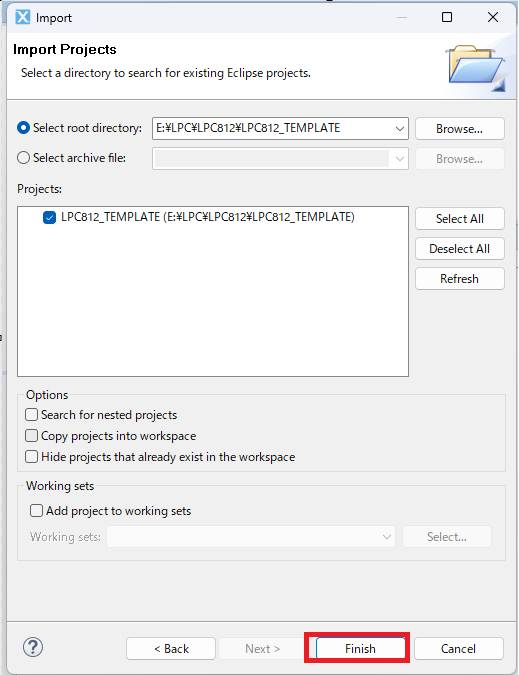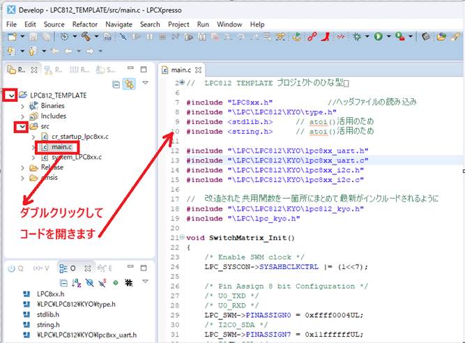 LPC812_TEMPLATE プロジェクトを読み込みします