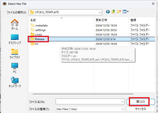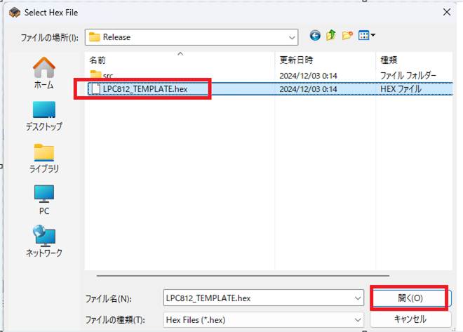 LPC812_TEMPLATE.hex ファイルを選択しました