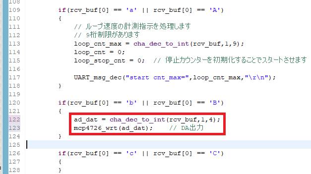 mcp4726_wrt(ad_dat); // DA出力