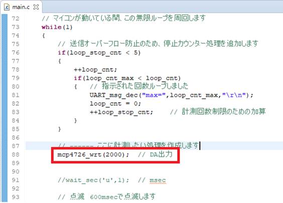 mcp4726_wrt(2000); // DA出力