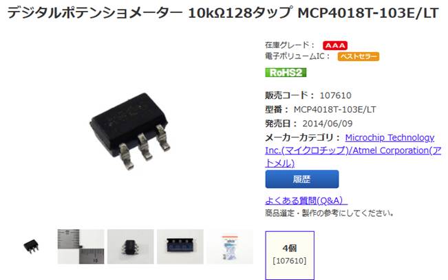 デジタルポテンショメーター 10kΩ128タップ MCP4018T-103E/LT: 半導体 秋月電子通商-電子部品・ネット通販