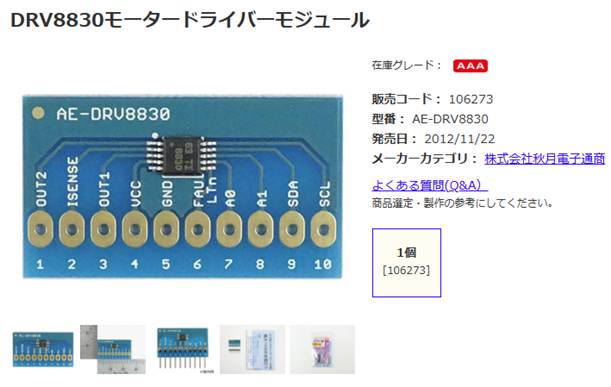 DRV8830モータードライバーモジュール: 半導体 秋月電子通商-電子部品・ネット通販