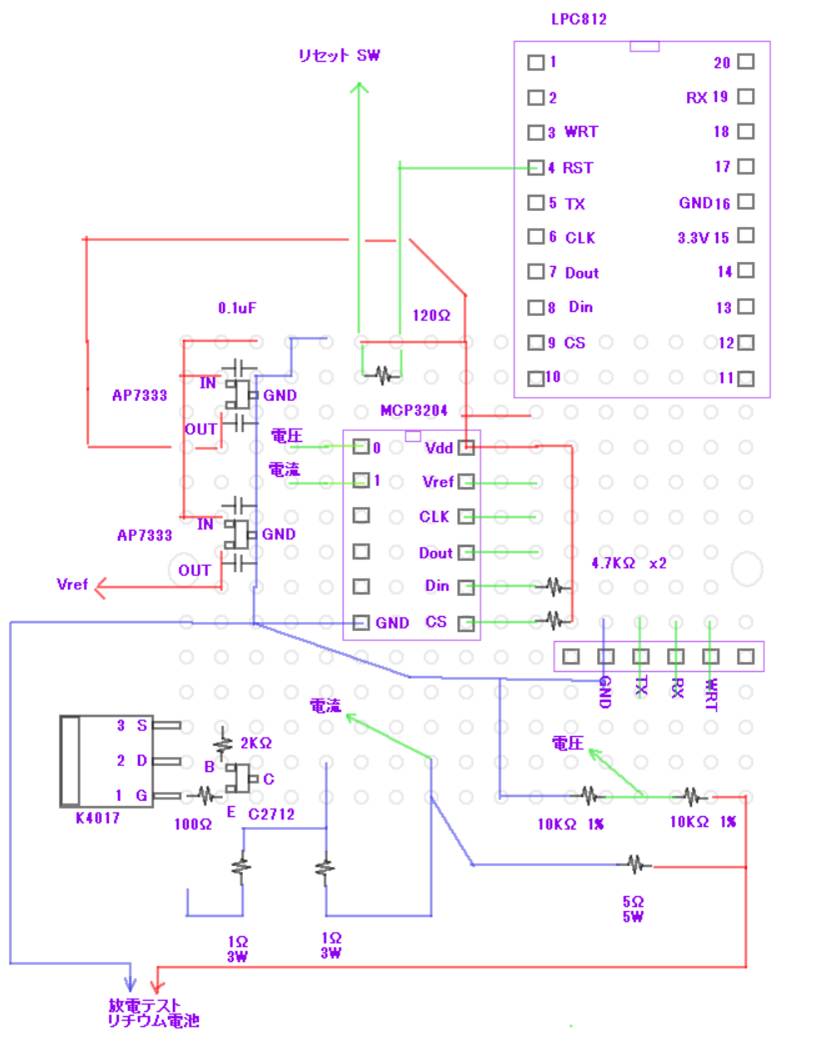 充電制御回路の為、放電テストの電池を外しても 1733 mV より下がりません