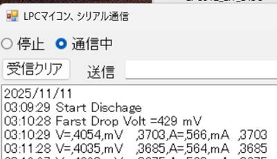 // 2025.11.05 水曜 goma0099 リチウム電池放電特性の測定