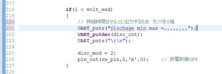uint8_t disc_mod; // 0:放電前(解放電圧) 1:放電開始 2:放電終了