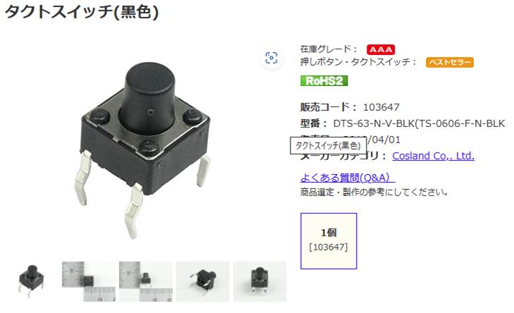 タクトスイッチ(黒色): 制御部品・駆動部品 秋月電子通商-電子部品・ネット通販