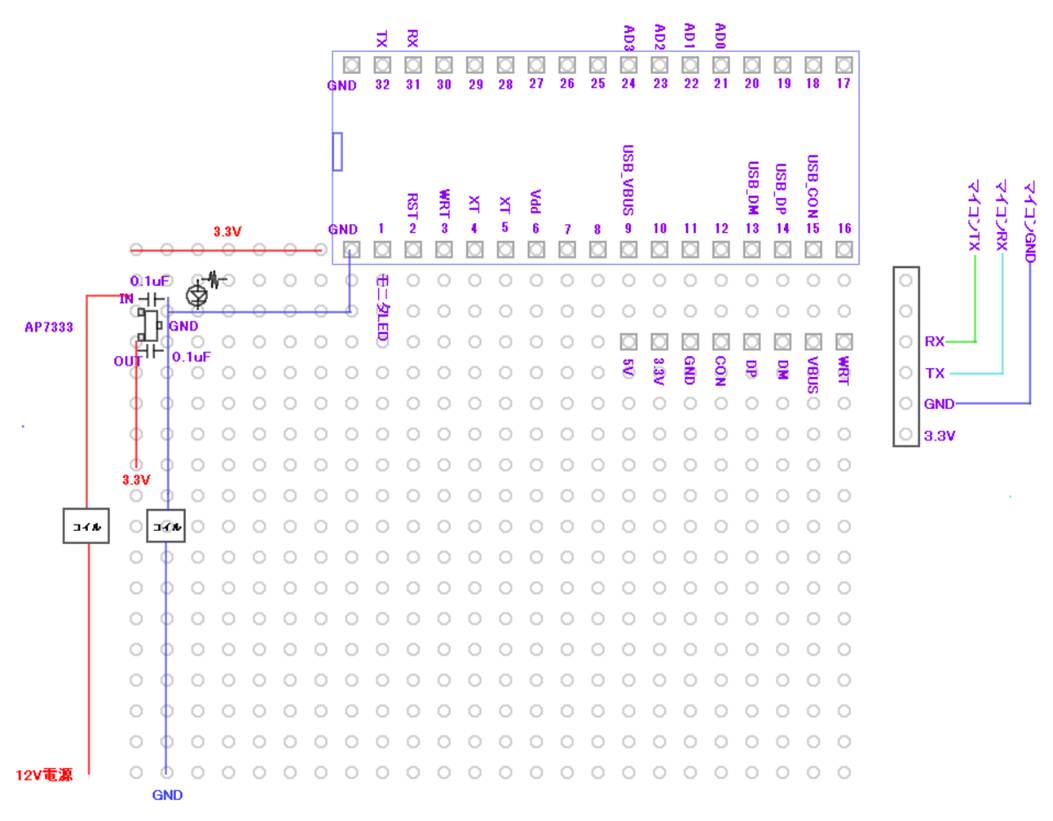3.3Vレギュレータ、シリアル通信、LED回路を追加します