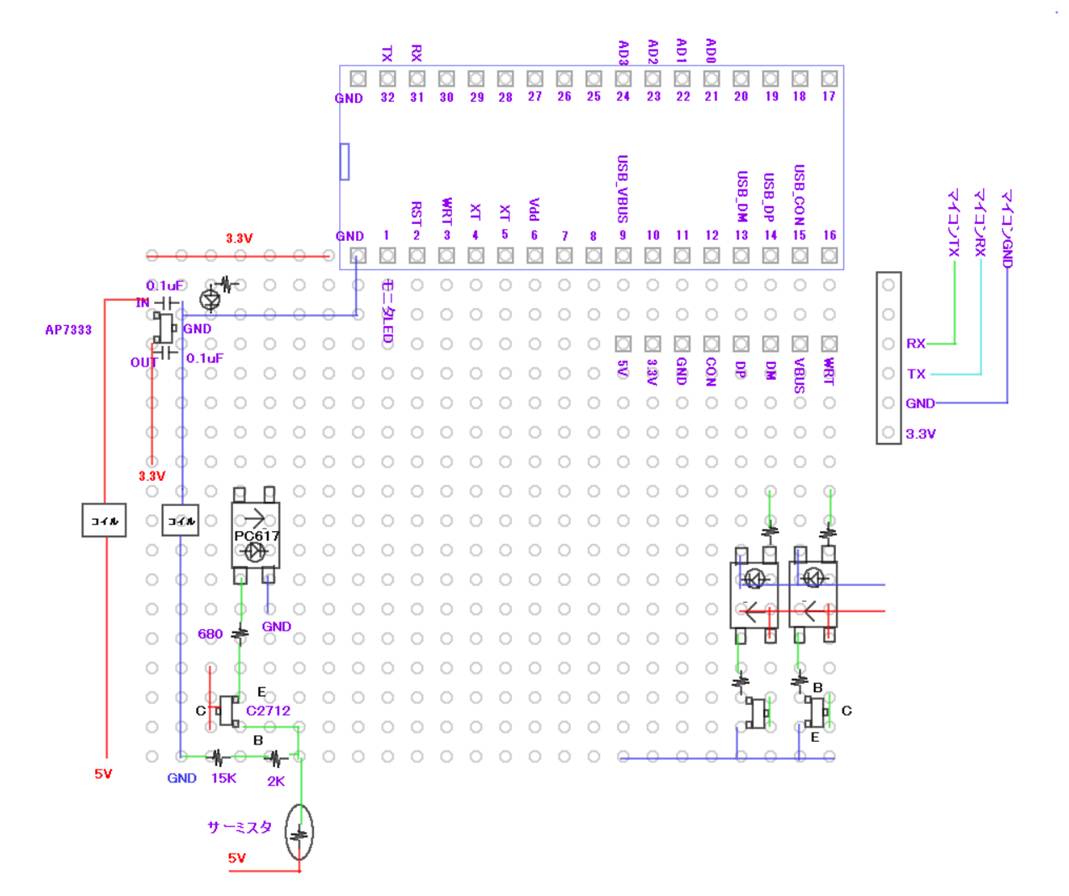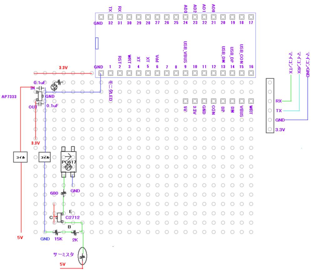 サーミスタとリレー回路をアイソレートします