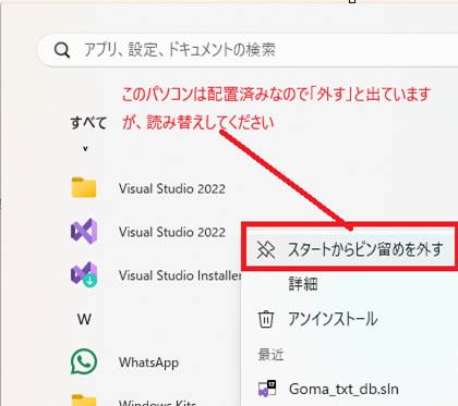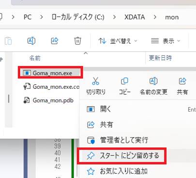 生成された実行ファイルは、何度も実行するので、スタートにピン止めします