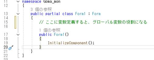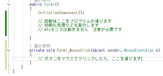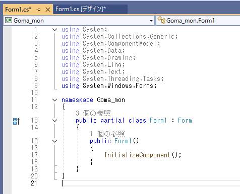 フォームに配置される要素の管理コード、Form1 button1 とかは、パラメータで変更できるのですが、手間を節約するため、あえて変更しません。
