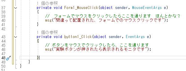 ボタンをマウスでクリックしたときの、イベント動作を作ります