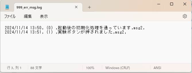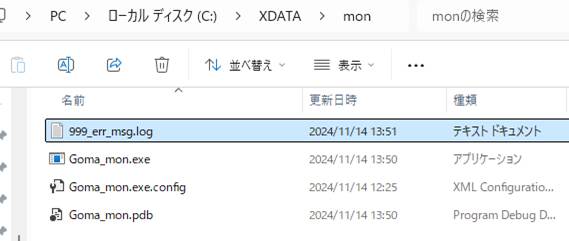 プログラムが生成されるフォルダ、起動フォルダを開くと、ログファイルが生成されています