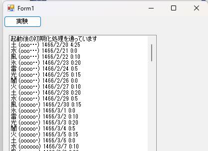 // 任意カレンダーデータを1週間作成し、ゲーム内時計を調査する