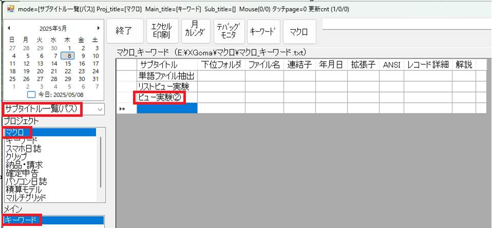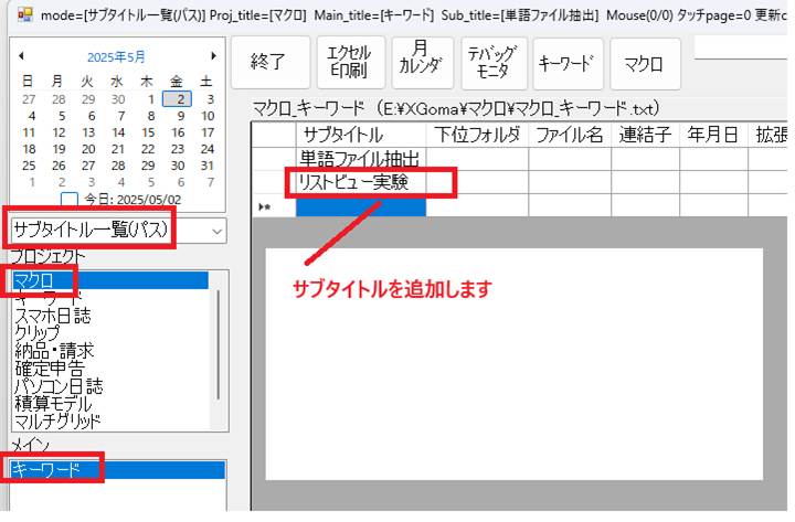- マクロのサブタイトルを新しく追加したあと、リストボックスを選択しても画面が変化しません