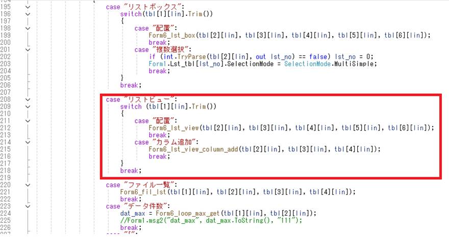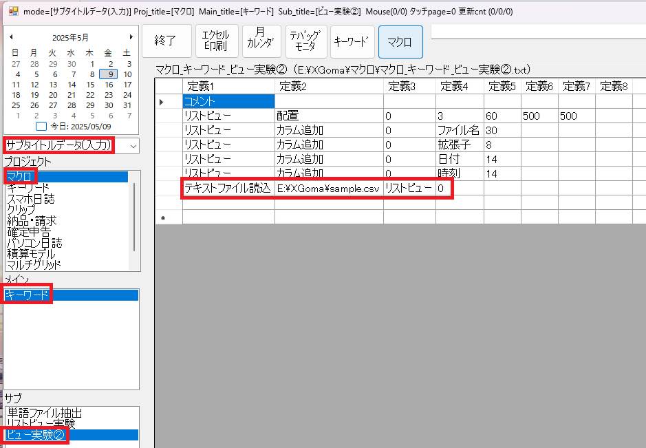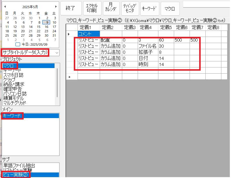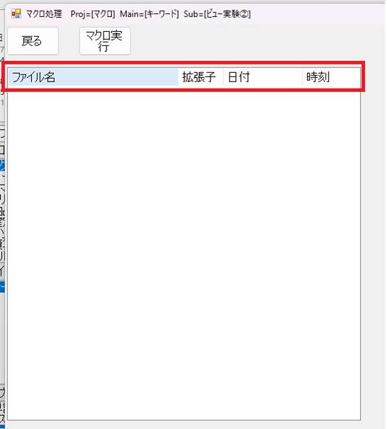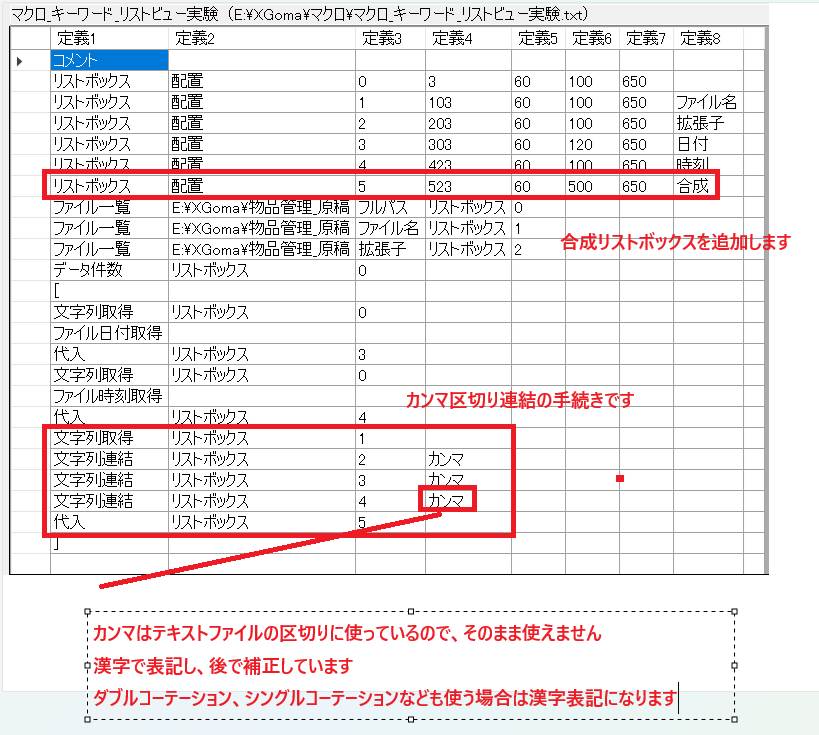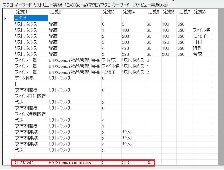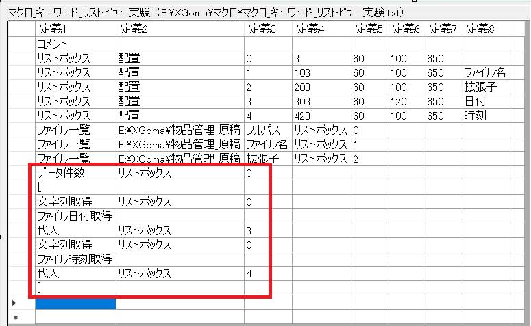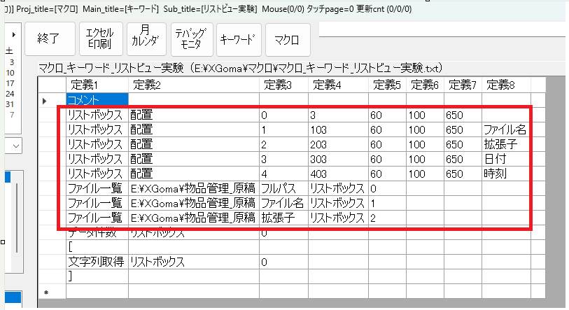 - リストビュー表示のための配列はマクロのループ以外で処理します