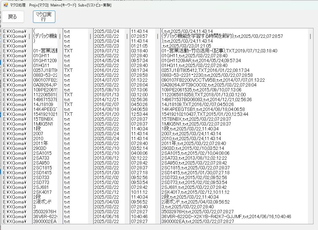 - データグリッドビューでは、数分要していたで、リストビュー代替は実現可能と考察します