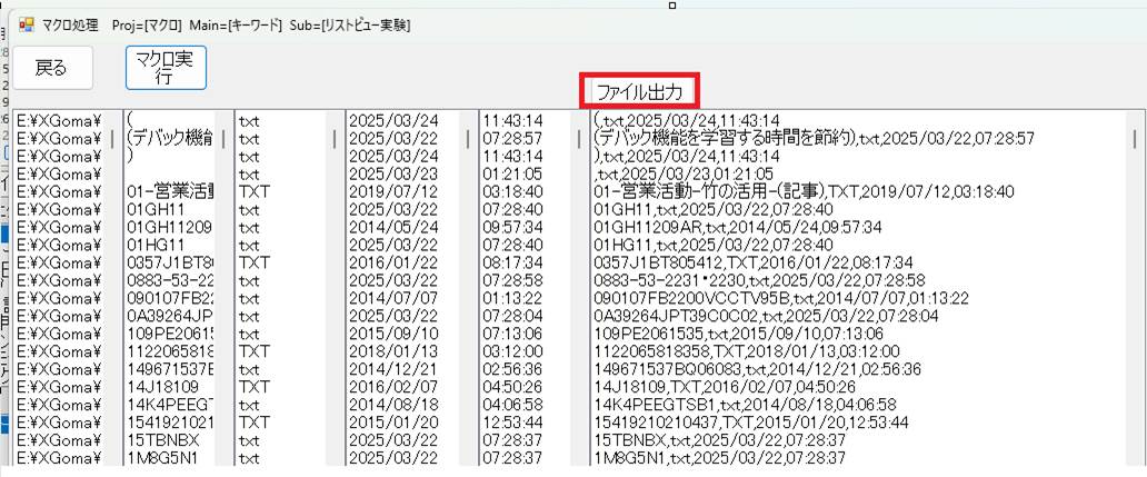 - 拡張子、ファイル日付、ファイル時刻のリストボックスを追加し、すべてテキスト出力します