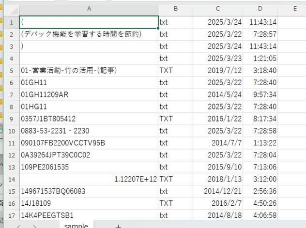 ループ処理を使い、ファイル一覧の日付と時刻を代入します
