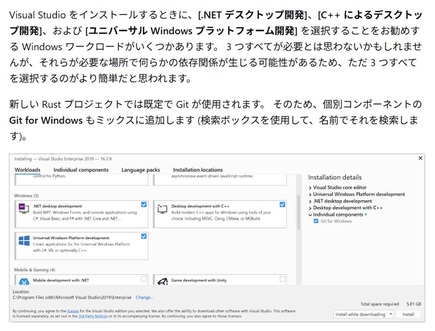 - Rustは完全コンパイル型、ガベージがなく高速であるという宣伝文句が気に入りました