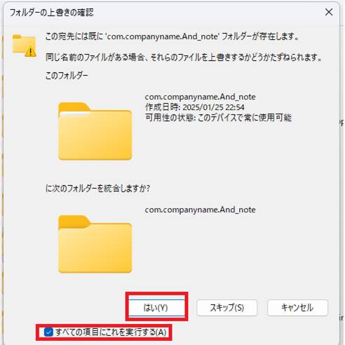 毎回デスクトップにバックアップしているので「上書き」確認が出ます