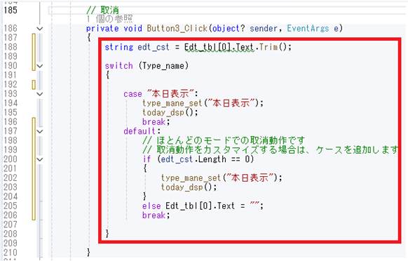 // 取消動作をカスタマイズする場合は、ケースを追加します