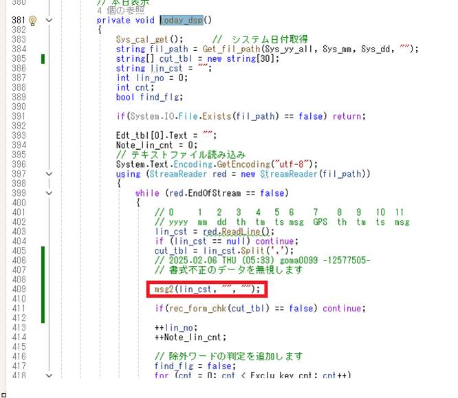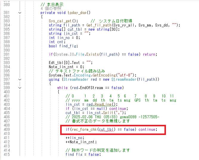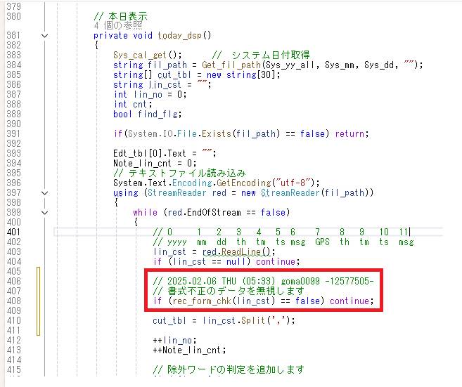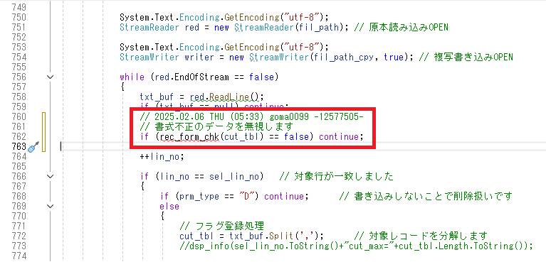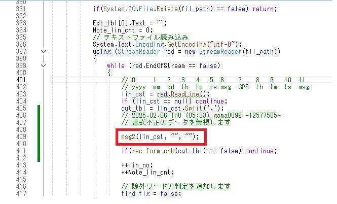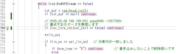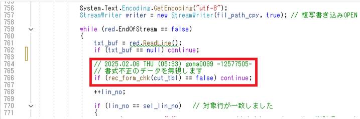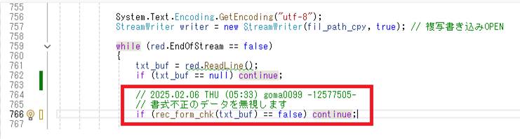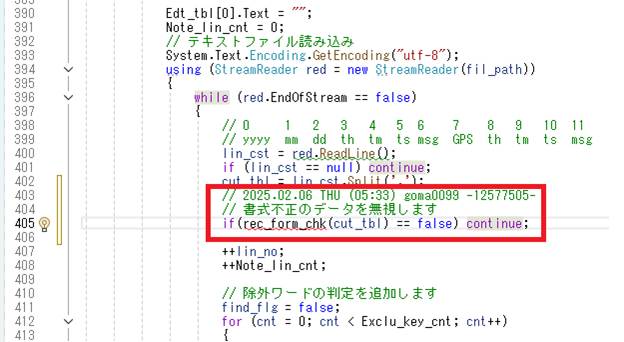 まずこのようなイレギュラーデータを読み込みで無視する処理を追加します