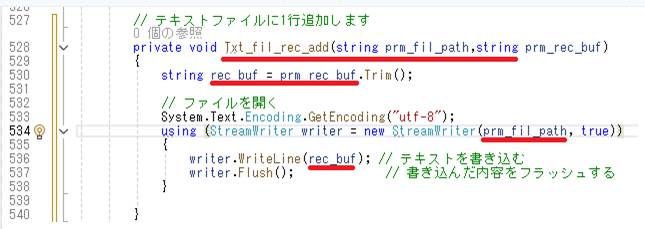 writer.WriteLine(rec_buf); // テキストを書き込む