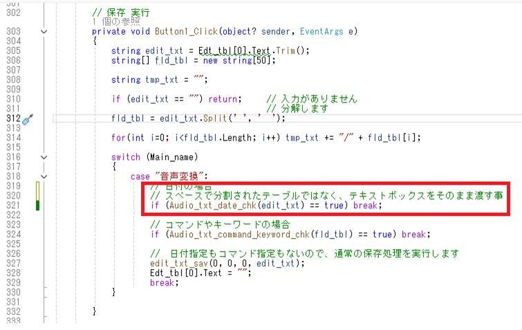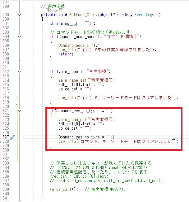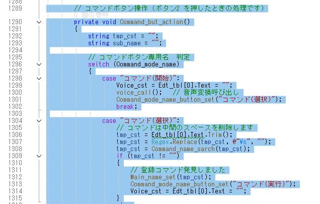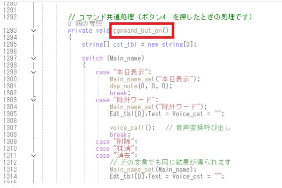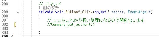 ボタン2(コマンド)は使わなくなるので、内部をコメントにします