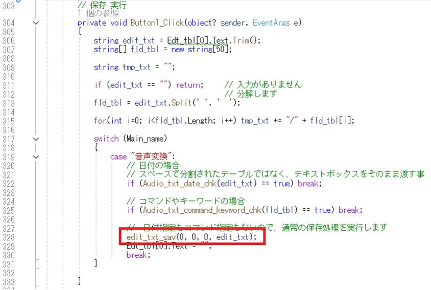 実行/保存が動かず、下記修正をして、保存が直りました