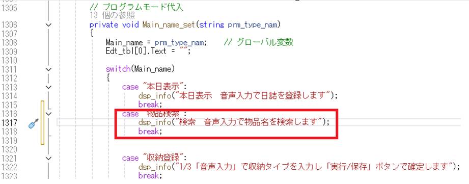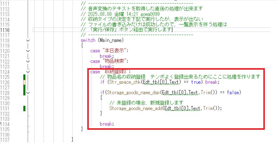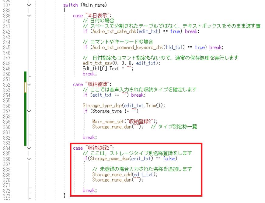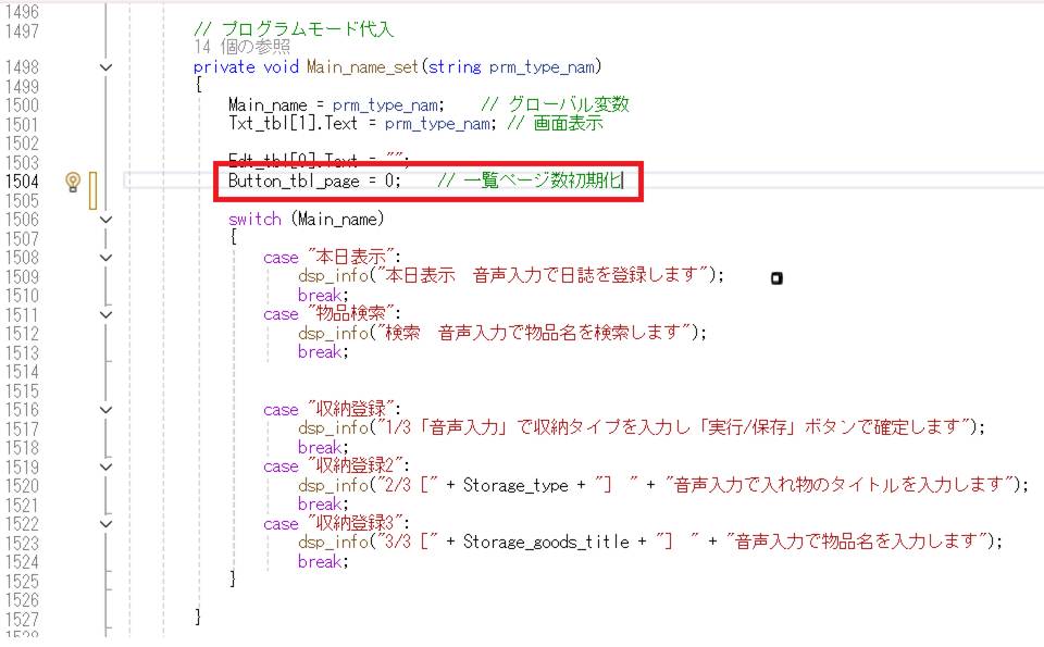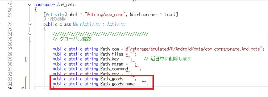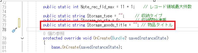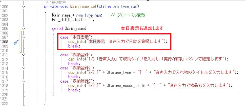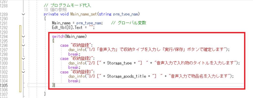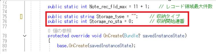 収納名称を確定するためのグローバル変数を追加します