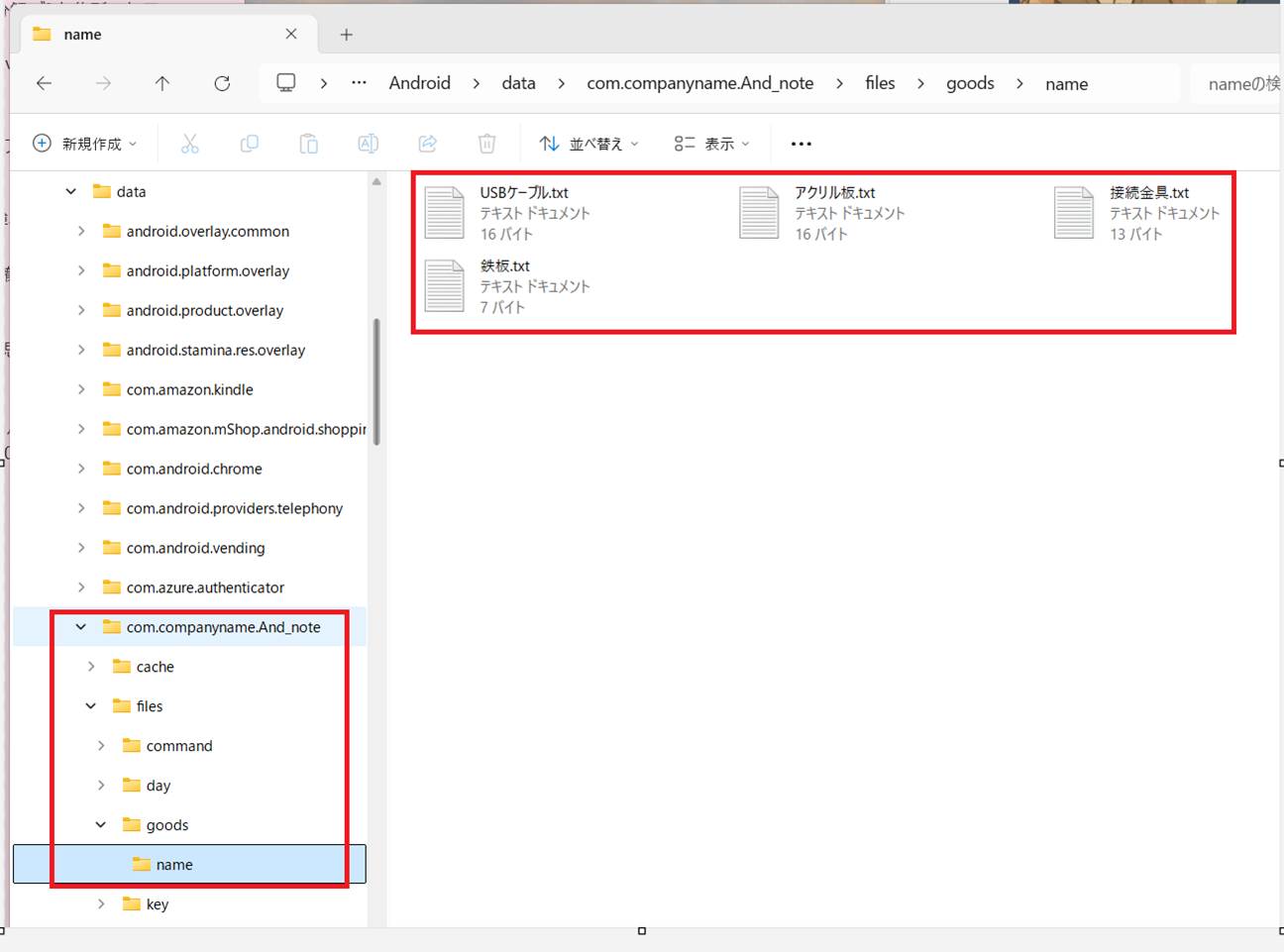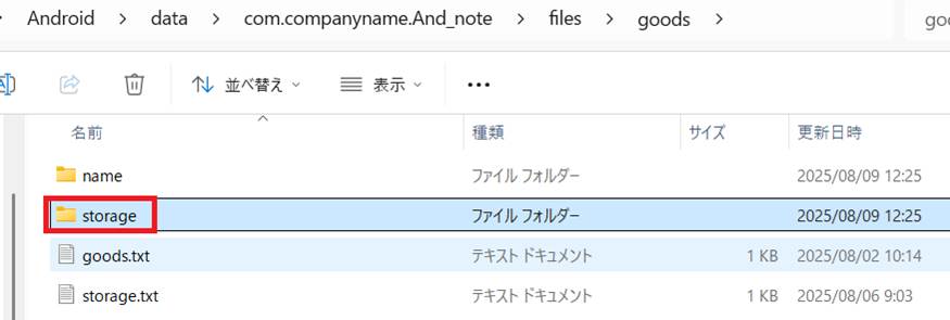 物品名のサブフォルダを追加します