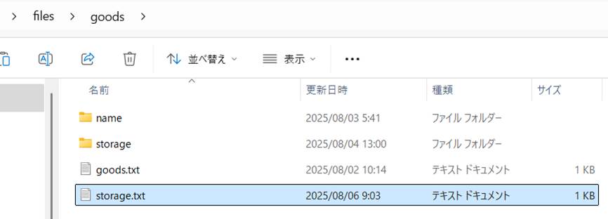 ストレージタイプは手作業でテキストファイルを作ります