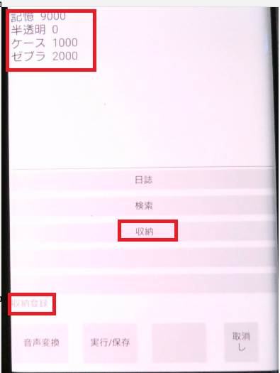 収納名称の登録で躓いています