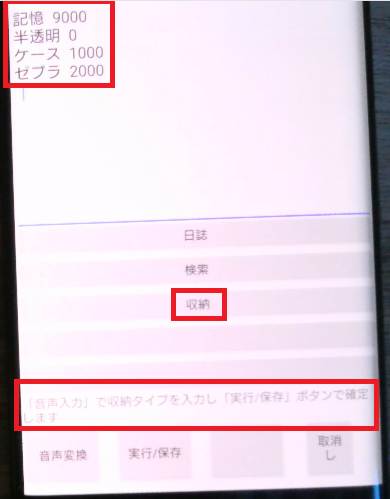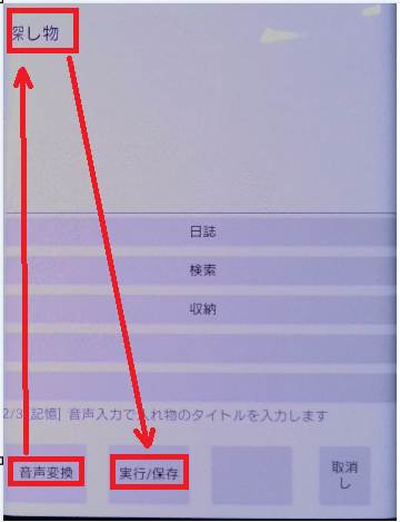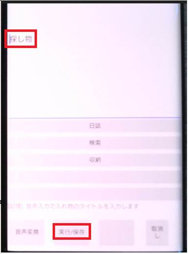 物品の収納登録は「実行/保存」ボタンを使いません