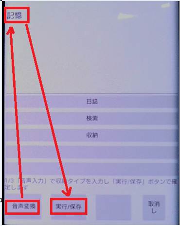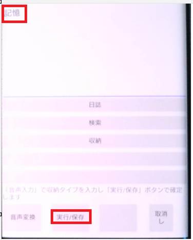 タイプ別名称は音声入力、フリック入力のあと「実行/保存」ボタンで登録します