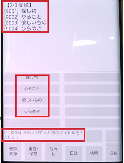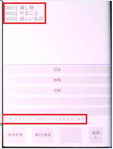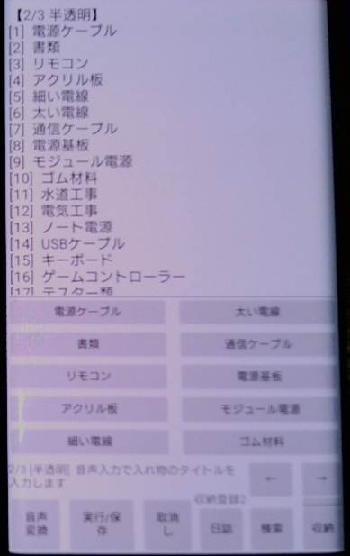 // 収納する物品名の登録