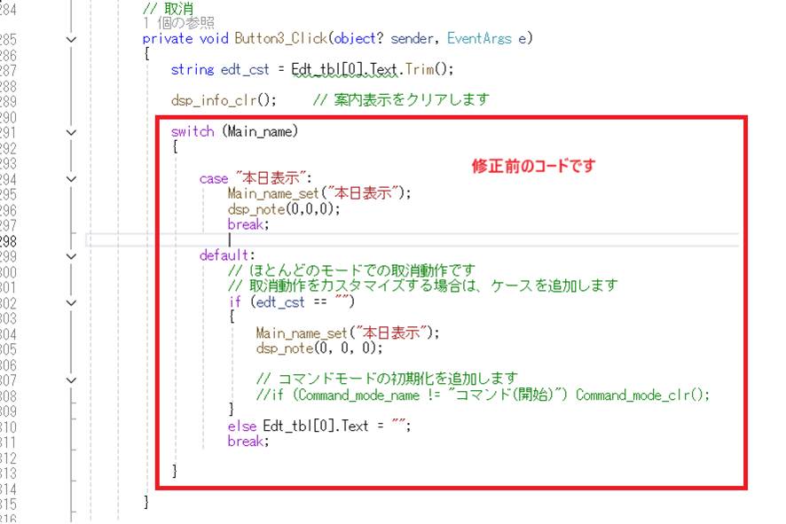コマンドモードに関する処理をコメントにします