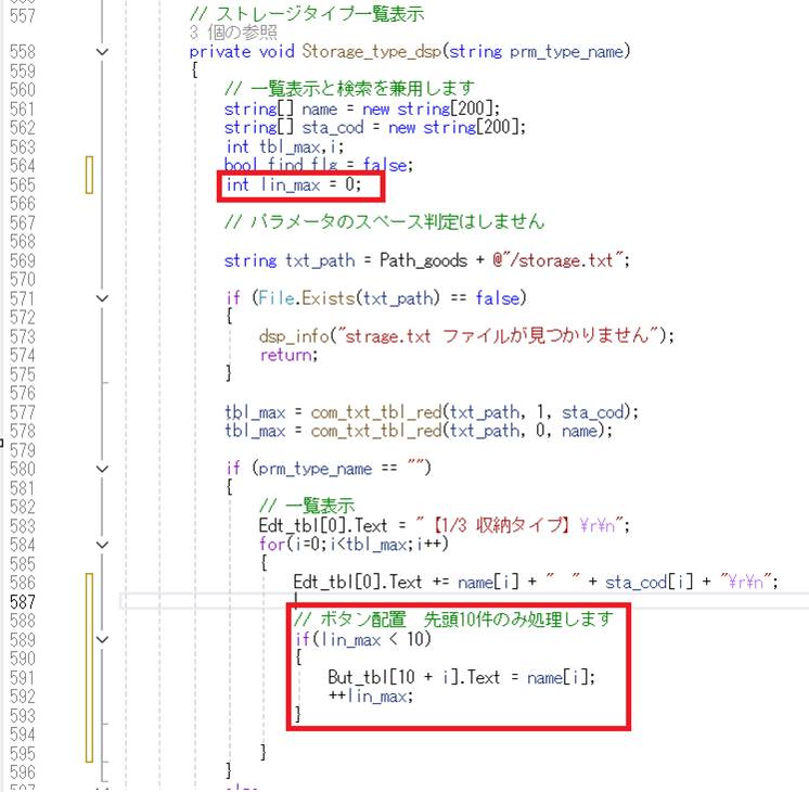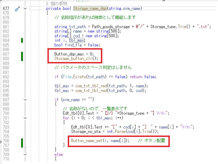 収納登録の一覧表示をボタンに代入してみます