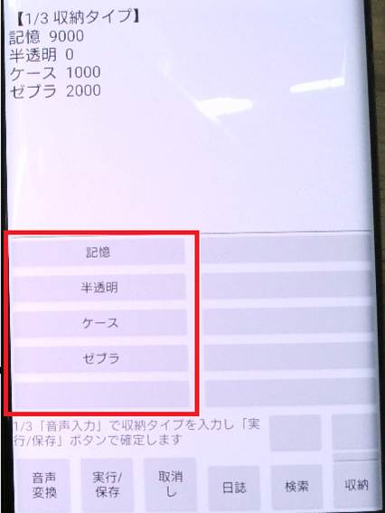 「収納タイプ」入力後の動き