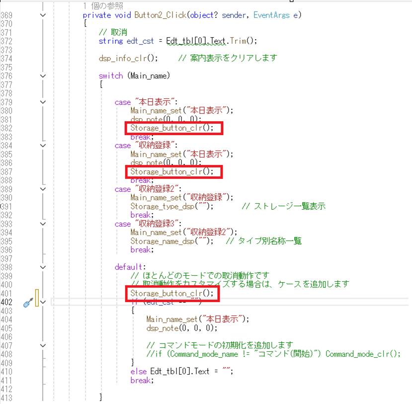 検索ボタン、日誌ボタン、取消ボタンのあと、10-19ボタンの名称をクリアします