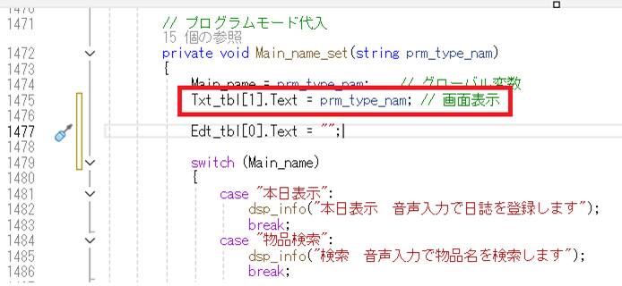 案内メッセージは、Main_name_set() 関数の中に組み込みします