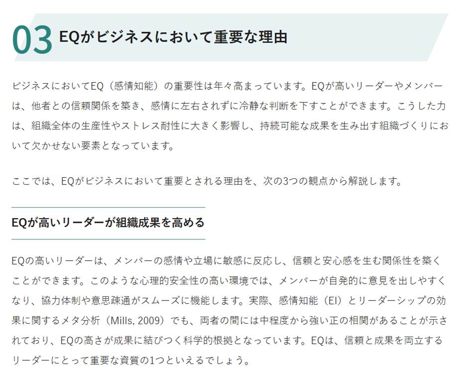 - 新しく検索で知った内容として「EQ」心の知能指数というものが出てきました