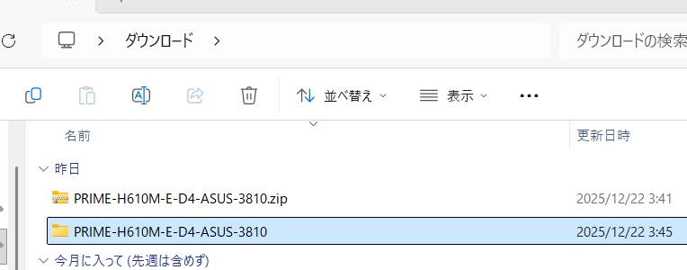 - しかたなく USBメモリに解凍したファイルをコピー、再起動し F2 or DEL キーを使って BIOS画面を起動します