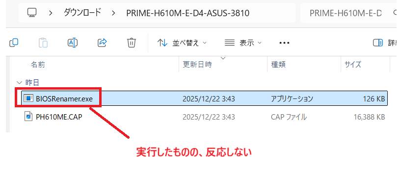 - BIOS更新ファイルの保存先を選択して PH610ME.CAP を選択して実行します